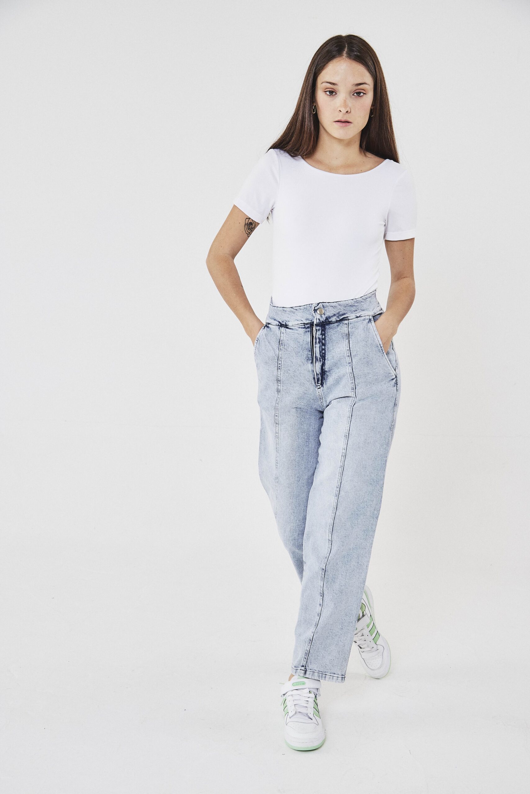 Su color de índigo puro permite una paleta de azules medios hasta celestes limpios. En lo que respecta a lavandería, al tener hilado grueso y rústico, soporta lavados tipo bleach incluso con roturas y desflecados. Por su terminación tiene un aspecto marmolado vintage ideal para prendas tipo regular inspiradas en los 90´ o de calces con cintura alta.